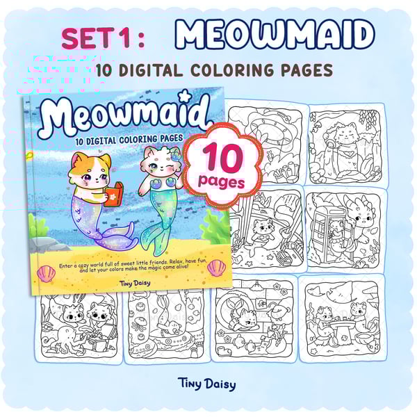 Little Meowmaid Coloring Book (Full Pages PDF)