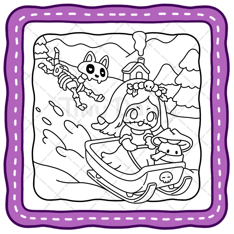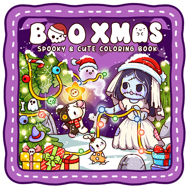 Inside this cozy-spooky coloring book, you’ll find adorable ghosts, giggling skeletons, cheerful pumpkins, and mummies in Santa hats — all celebrating Christmas in their own mischievous ways. With 45 hand-drawn pages (plus 10 festive bonus pages!), it’s a playful blend of Halloween mischief and Christmas cheer that’s perfect for cozy nights and cocoa breaks.